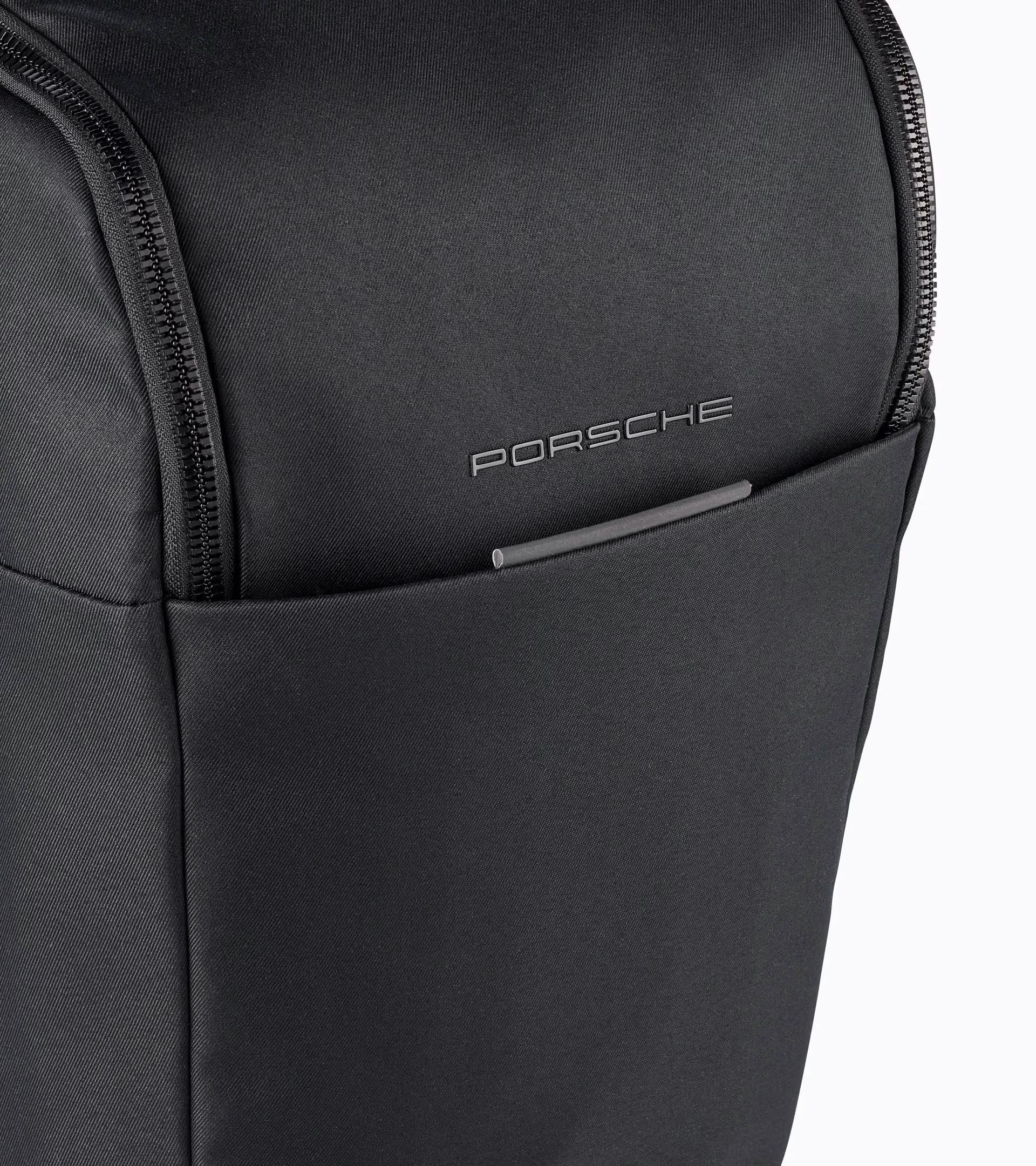Rencontre du minimalisme et de l’élégance : la collection Essential au design épuré traduit l’esprit Porsche dans sa forme la plus pure. Fabriqué à partir de sergé recyclé, ce sac à dos incarne durabilité et fonctionnalité. D’aspect uni sur toute la surface, il se distingue par une inscription Porsche en caoutchouc et une languette réfléchissante sur le devant. La poche à fermeture à glissière avec protection RFID et plusieurs autres poches permettent une organisation optimale. Les tirettes de fermeture à glissière en métal distinctives s’inspirent des culbuteurs Porsche d’origine et apportent une touche visuelle particulière. Un compartiment intérieur matelassé pour notebook jusqu’à 13 pouces avec fermeture auto-agrippante et languette siglée protège l’appareil. L’ouverture en forme de U et la fermeture à glissière bidirectionnelle facilitent l’accès au contenu. Le dos rembourré avec fixation pour valise trolley, les bretelles rembourrées réglables en longueur et la poignée de transport assurent confort et flexibilité.