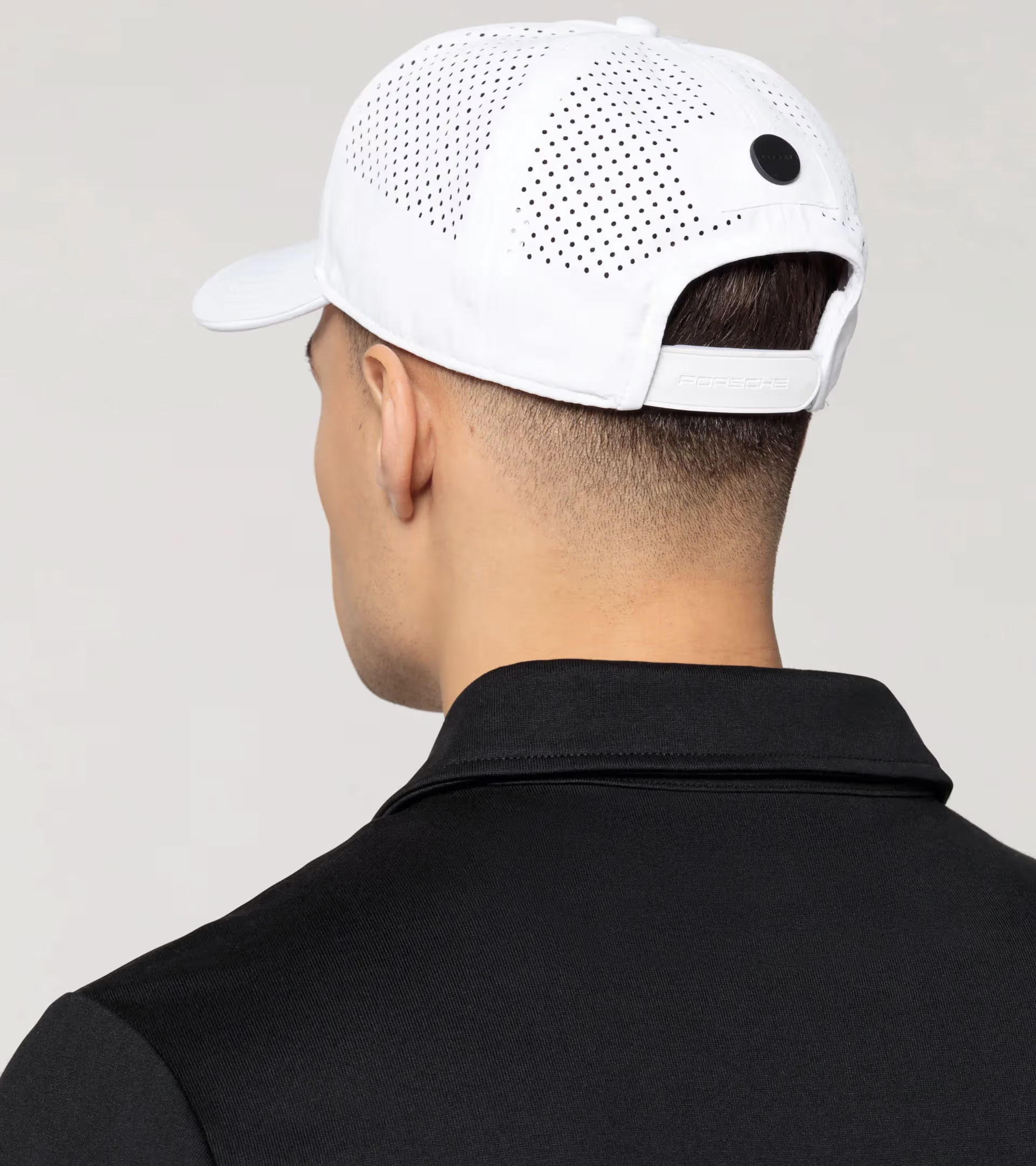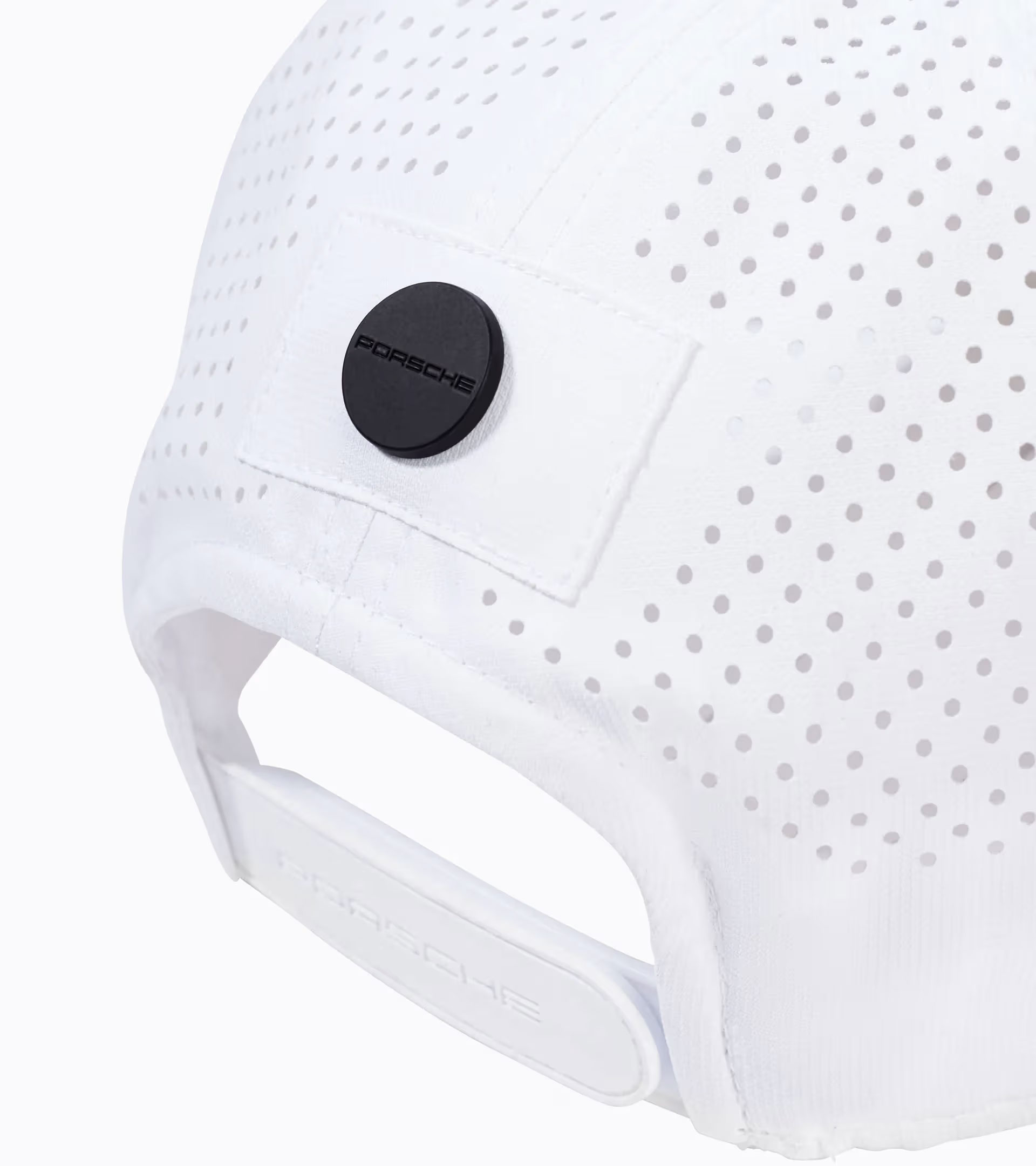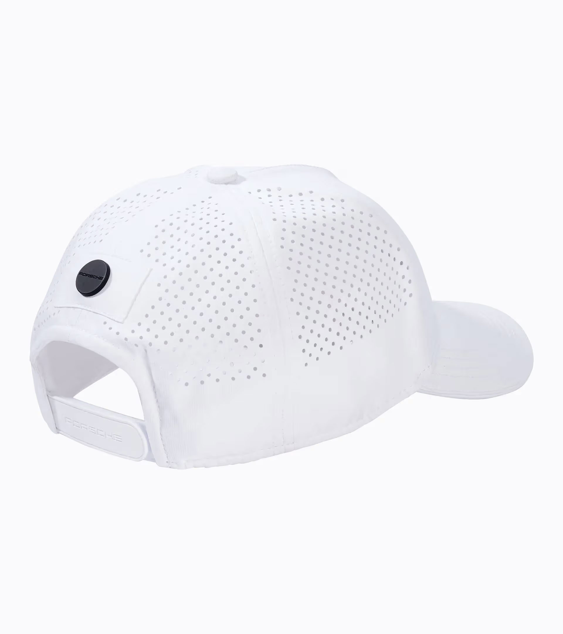 Casquette de base-ball perforée à 5 pans avec dispositif de fermeture et signature « PORSCHE MOTORSPORT». Bouton à l’arrière, au centre, avec signature « PORSCHE».